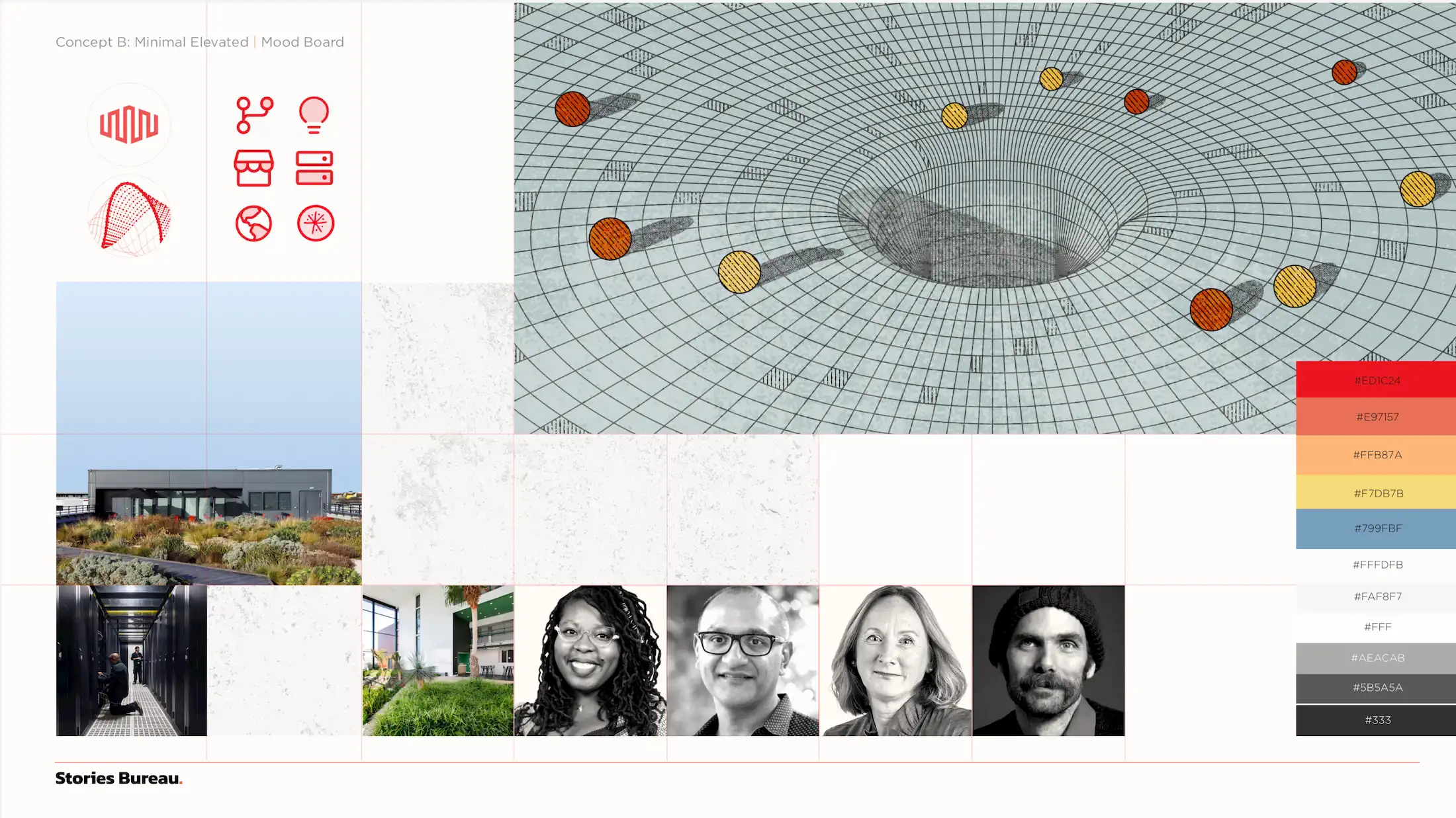 I visualized this integration through a graphic representation, mapping a spectrum from "Corporate" to "Expressive". The design exploration was a collective effort: