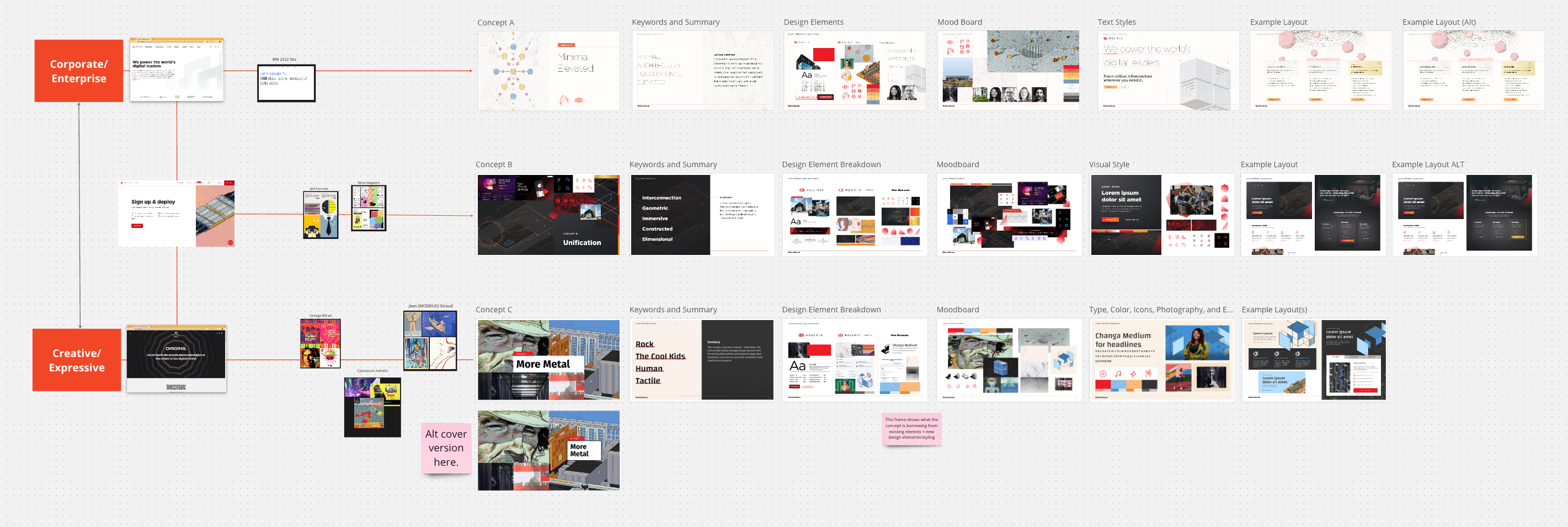 I visualized this integration through a graphic representation, mapping a spectrum from "Corporate" to "Expressive". The design exploration was a collective effort: